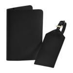 Tearaway label for ease of rebranding, Saffiano fine grain, Soft-touch lining, High shine gold metal trims, Two piece set, Maximum print area: Passport: 8x12cm, Tag: 5x8cm, Dimensions: Passport 10.5x14.5cm Tag 6x11.5cm